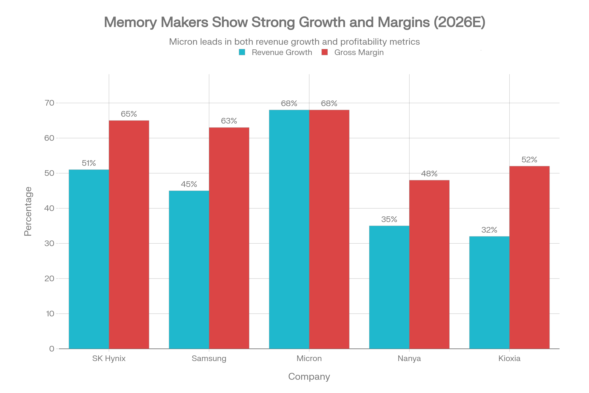 - Memory gross margin: 62–65% (second-best after SK Hynix)